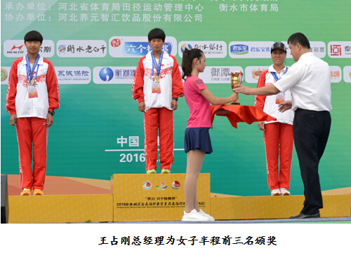 經(jīng)過激烈角逐,各比賽項(xiàng)目都賽出了較好的成績(jī),酒業(yè)公司總經(jīng)理王占剛為女子半程馬拉松賽獲獎(jiǎng)選手頒發(fā)了獎(jiǎng)杯。