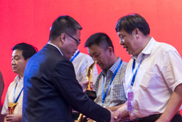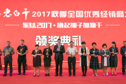 會議過程中對2017年中秋銷售做出突出貢獻的優(yōu)秀經(jīng)銷商們進行了表彰??偣绢I導上臺為各位獲獎經(jīng)銷商頒獎并合影留念。