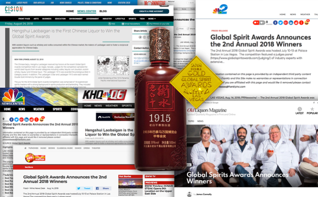 近日,衡水老白干的兩款產(chǎn)品在2018世界烈酒大賽 (2018 Global Spirit Awards)上獲最高獎——雙金獎,衡水老白干1915更被評為“全場最佳”。包括NBC(美國廣播公司)在內(nèi)的全球300余家媒體爭相對此次獲獎進(jìn)行了報道。